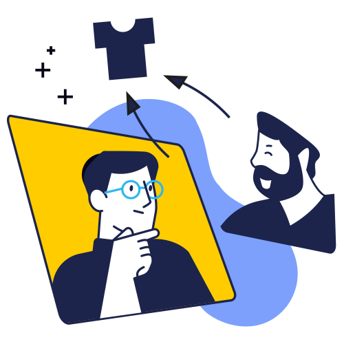 Konfigurujesz koszulkę ze swoim wzorem — logo, hasło, grafika. Ustalasz cenę sprzedaży. Widzisz ile zarobisz na każdej sztuce.